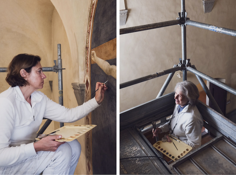 修复师们对弗拉·安杰利科的壁画《耶稣受难图》进行修复