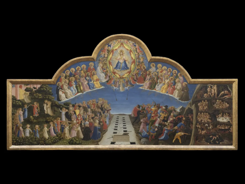 安杰利科也描绘了赞助人科西莫·德·美第奇这样的人物的精神生活相关的宗教图像。他为美第奇而作的《最后的审判》,展现他谋篇布局的能力。乐园与地狱场景虽然不像西斯廷教堂同题壁画那样恢弘,但井然的秩序中镶嵌着人的诚挚。