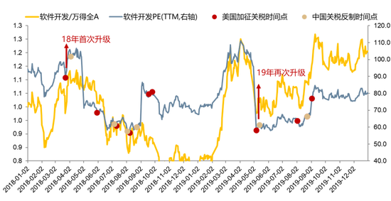 在18-19年贸易摩擦升温的过程中,19年5月关税升级时期A股的估值水平也高于18年下半年。