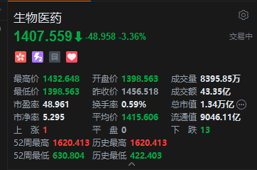 港股生物医药股多数走低,跌超7%,跌超5%,、、、跌超4%。