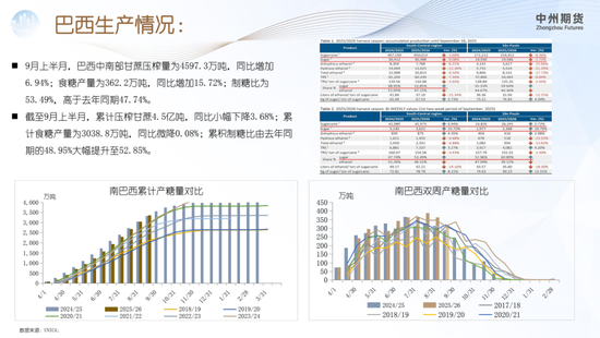 (2)根据普氏调查,预计巴西中南部地区9月上半月甘蔗压榨量为4592万吨,同比增加6.8%;预计食糖产量为360万吨,同比增加15%。9月上半月UNICA继续延续压榨高峰,短期存在压力。