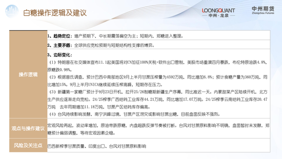 趋势定位:增产预期下,中长期震荡偏空为主;短期内,郑糖进入整理。