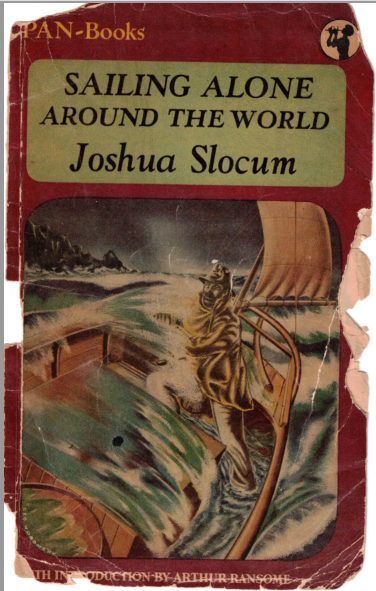 起初,有一个叫做约书亚·斯洛卡姆(Joshua Slocum,1844-1909)的航海家:在十九世纪末,他成为独自环球航行的之一人。斯洛卡姆的《独自环球航行》(Sailing Alone around the World,1900年)是每个热爱大海的人——特别是那些立志亲自远航的水手——书单上的首选。(这本书有许多版本,新旧皆有。较早的版本配有一些十分可爱的插图。例如,可以在网上免费查看古登堡计划的版本。至于我自己使用的是1950年Pan Books图书公司的袖珍版,附有阿瑟·兰塞姆[Arthur Ransome]的序言——那是一本翻得皱巴巴的旧书,先后经过了我父亲和我两个哥哥之手传下来。)