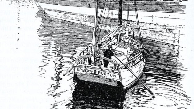 到了十九世纪末,帆船被迫让位于蒸汽船。斯洛卡姆再也无法在为数不多的三桅或四桅帆船上找到船长的职位。他尝试在造船厂寻找工作机会,但也以失败告终。海蒂和孩子们寄宿在亲戚家。人生中之一次,斯洛卡姆船长真正迷失了航向——直到一位老友伸出援手,送给他一艘在陆地上搁置腐烂了七年的百岁渔船。这艘名为“喷雾”号的小船有着悠久的捕捞牡蛎的历史。斯洛卡姆对这艘造型优美的小船一见倾心,立志将其彻底修复。这对他来说正是得心应手。经过测量,这艘船甲板长36.5英尺,宽略超过14英尺,吃水深度为4英尺。在十三个月的时间里,他仅花费553美元,偶尔在朋友的帮助下,就把那艘破败的残骸化作一艘“像天鹅般浮在水面”的优雅的远洋之舟。