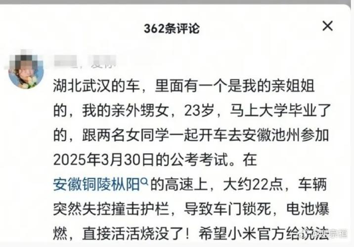 2025年10月13日凌晨3时16分左右,成都天府大道仁寿视高段发生一起严重交通事故,涉事车辆为小米SU7。从现场流出的相关视频、图片以及现场目击者确认,驾驶员已不幸遇难。