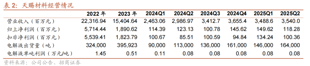 天赐材料是全球更大的电解液、六*锂、LiFSI企业,电解液市占率超过35%。公司多年来布局与自供,六*锂、LiFSI,自供比例已达到 90%以上,部分核心添加剂自供比例达到80%以上,公司突破上游高壁垒精细化工材料后带来成本优势近几年进一步巩固,同时,公司在各个环节达到较大经营规模后,开始推动部分中间品的循环使用,进一步降低了成本。公司电解液领域的综合竞争优势在这一轮周期中得到了巩固和加强;而对照电解液同行经营来看,电解液盈利水平已经见底。