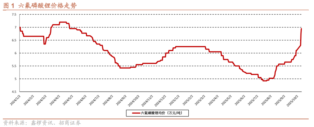 库存告罄,6F的本轮涨势有望穿越淡季周期。前三季度部分头部6F企业月度出货大于排产,库存不断降低,业界反馈多家六氟代表性公司库存已耗尽。展望26Q1淡季,即便季度环比需求出现20%下滑,六氟公司只需要适当补充库存就仍能保持满产,因此我们分析本轮涨势有望穿越淡季周期。