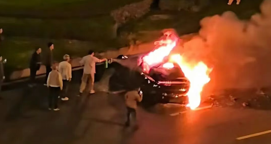 另有视频显示,有人找来锤子成功打开主驾驶位车窗后,发现车内火势太大,有其他的车主拿来灭火器,在灭火途中车辆突然发出异响,蹿出明显火势。路人连忙后退。