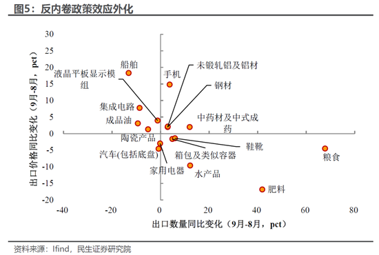 最后,在“反内卷”趋势下,价格修复开始向外部传导。9月多数出口产品价格逐步修复,“量稳价升”的良好态势愈发明显。
