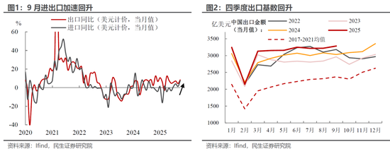 往后看,在中美贸易冲突反复的背景下,出口有望继续展示出独特的韧性。非美市场多元化布局与产业链升级提供长期支撑,叠加全球经济边际回暖,“量稳质升”格局有望延续,因此尽管四季度仍面临关税与基数压力,但外需增长仍有底部支撑。