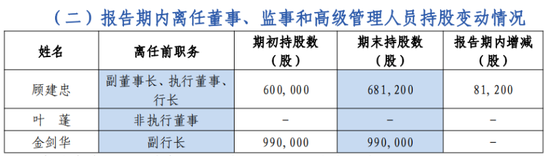 今年上半年,上海农商银行共有3名董监高离任,分别为副董事长、行长顾建忠,非执行董事叶蓬、副行长金剑华。