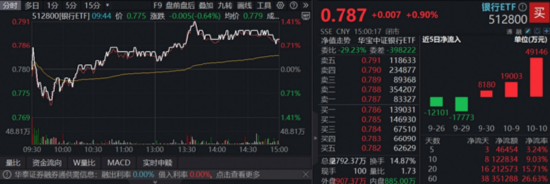 【防御需求再起,银行全天走强,百亿银行ETF(512800)放量3连阳,7.6亿资金密集涌入】