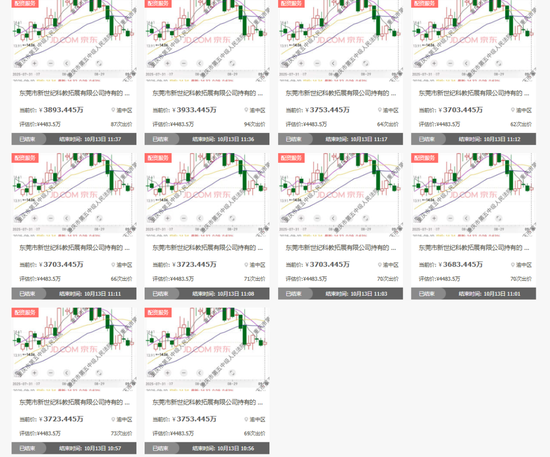 根据公告,锦龙股份此次股权拍卖,将新世纪公司持有的3000万股股份平均拆分成了10个标的,经过激烈竞逐,此次每个拍卖标的物最终成交价区间在3683.45万元至3933.45万元,较原始起拍价3138.45万元均有所抬升。