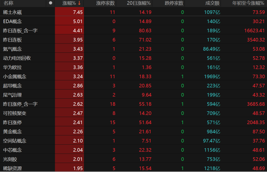 稀土永磁、氦气概念、动力电池回收、华为欧拉、小金属概念、超导概念、可控核聚变等概念领涨。