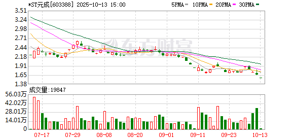*ST元成在公告中称,根据《行政处罚事先告知书》认定情况,公司2020年至2022年年度报告存在虚假记载,将触及《上海证券交易所股票上市规则》第9.5.1条之一款第(一)项和第9.5.2条之一款第(六)项规定的重大违法强制退市情形,可能被实施重大违法强制退市。