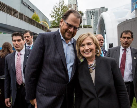 贝尼奥夫曾经是民主党人的大金主,是奥巴马和希拉里的主要支持者,曾在自己豪宅为希拉里举办筹款活动。而且,他还曾经推动旧金山向大企业征税,筹款用于安置无家可归者。几乎所有人都认为,他是一个倾向于自由派的超级富豪。