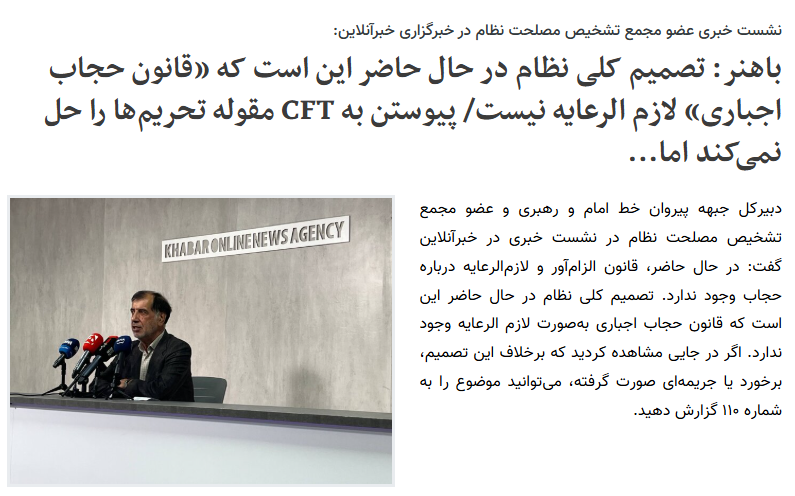 因此,巴霍纳尔的表态并非伊朗 *** 或更高领袖的正式立场,而是他以确定国家利益委员会成员身份、基于个人理解,对《头巾与贞洁法》执行现状的解读与判断。