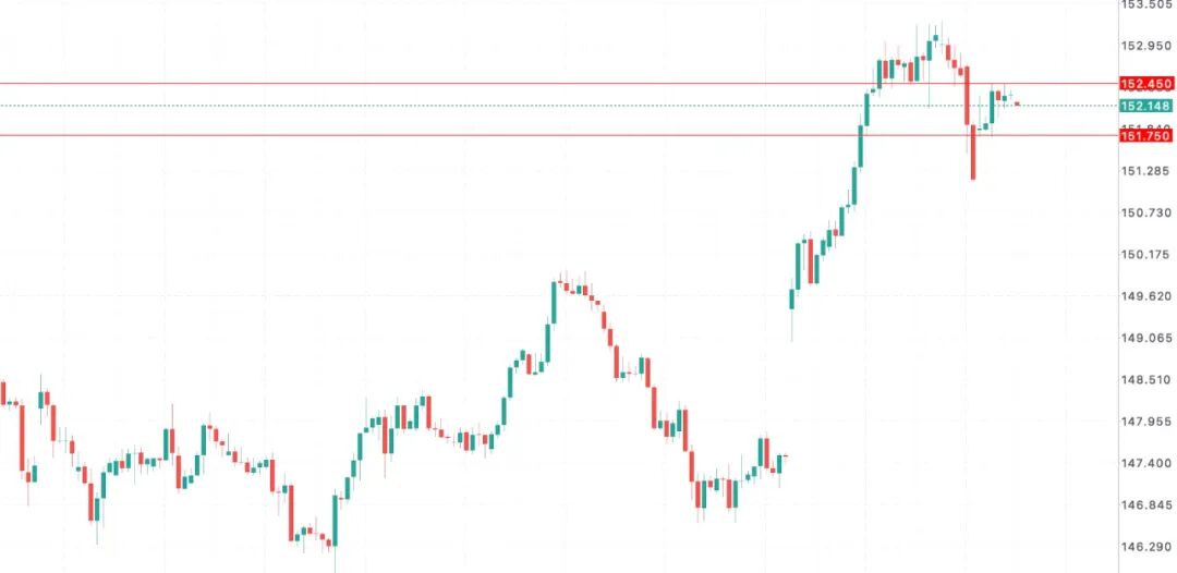 周一交易时段,波动表现平稳。日内更低测试151.71水平,截止收市更高触及152.44水平。