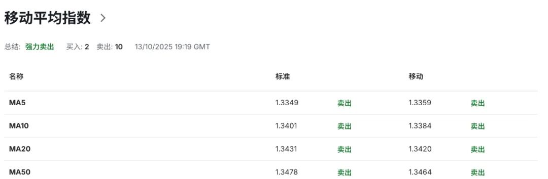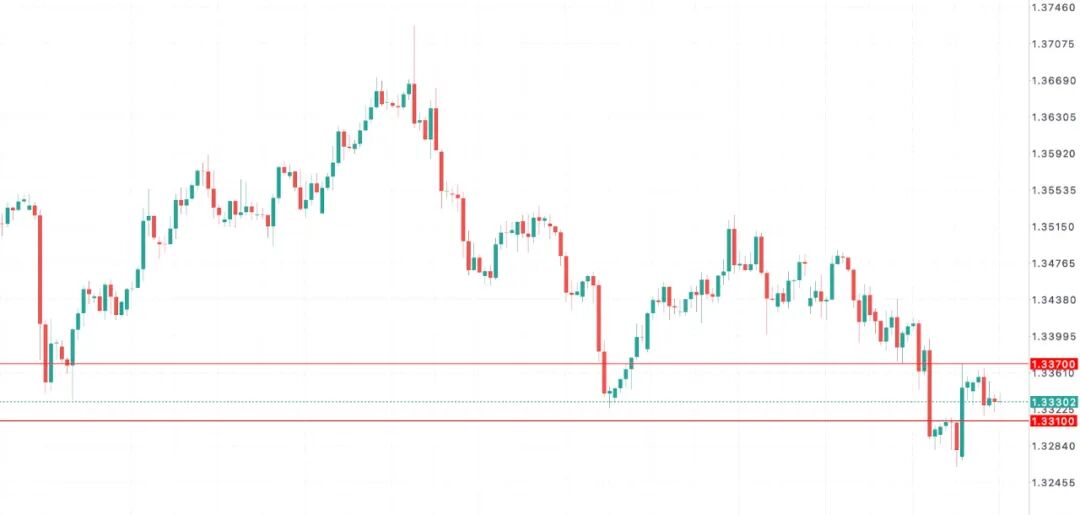 然而,在整体技术格局仍偏向空头的背景下,需警惕反弹动能衰竭的风险。一旦汇价跌破1.3310支撑区域,将再次下探1.3260区域。若该区域支撑失守,将确认主要下行趋势的恢复,后续可能进一步下探1.3200甚至更低区域。
