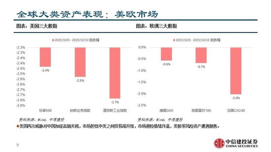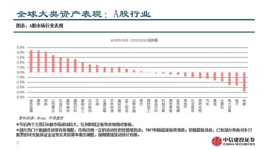 全球主要市场近期表现:节后两个交易日A股市场波动较大,红利和稳定板块表现相对靠前,TMT和新能源板块领跌,但前期融资政策调整导致的情绪扰动预计有限。受中美关系利空影响,市场再度开启避险模式,投资者风险偏好回落,港股美股明显调整,黄金走强,铜价回落。短期来看中美博弈可能影响市场风险偏好,需要注意防范市场流动性风险;但如果市场出现大幅调整,则有可能机会大于风险,注意把握黄金坑机会。