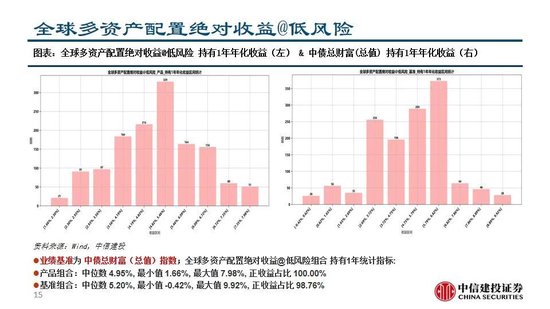 全球多资产配置绝对收益@低风险:本周回报0.26%,本月回报0.26%,本年回报2.83%,年化收益率4.78%,Alpha3.13%,Sharpe136.38%,更大回撤-2.20% ;1年持有期:产品组合中位数 4.95%, 正收益占比 100.00%,基准组合中位数 5.20%,正收益占比 98.76%。