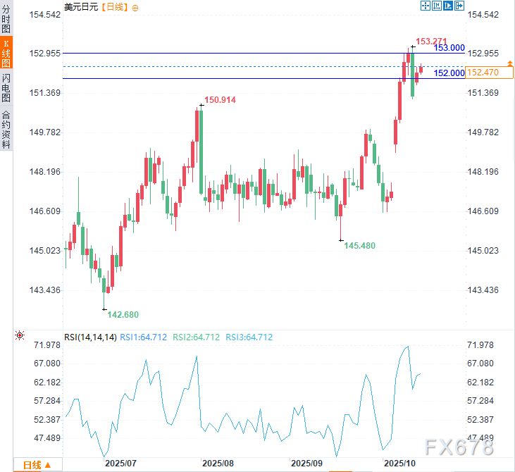 (美元兑日元日线图,来源:易汇通)北京时间10:14,美元兑日元交投于152.44/45。
