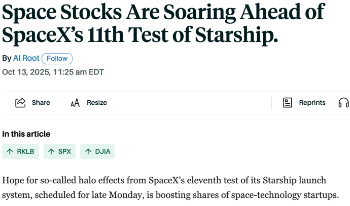 美国知名财经杂志《巴伦周刊》报道,“星舰”第11次试飞前,太空股飙升