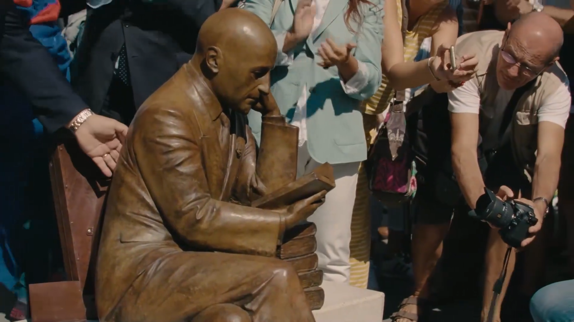 对于意大利民族主义者来说,阜姆是一场流光溢彩的盛会。“无线电之父”马可尼乘坐埃莱特拉号(Elettra)从海上抵达,受到礼炮和人潮的欢迎;阿图罗·托斯卡尼尼(Arturo Toscanini,意大利指挥家)则为阜姆的穷人们举办了一场慈善音乐会。影片的最后,在距离里耶卡75公里的意大利东部边界之内,意大利人又竖起了一座邓南遮的雕像,纪念“向阜姆进军”(Marciasu Fiume)已逾百年。当地市长罗伯托・迪・皮亚扎(Roberto Di Piazza)称,这个雕塑与军事元素无关,属于“文艺主题”(letterarie):邓南遮的雕像坐在长椅上,呈沉思状,一手撑着头,一手拿着书。这种姿态意图突显其作为知识分子的身份——占领阜姆不是血腥的侵略行为,而是意大利民族建构自身的文化仪式,其中固然有冲突,但那是《凡尔赛和约》的不公所引发的,正是凭借这种愤慨,“先知”(Vate)邓南遮得以创作,意大利民族得以凝聚。