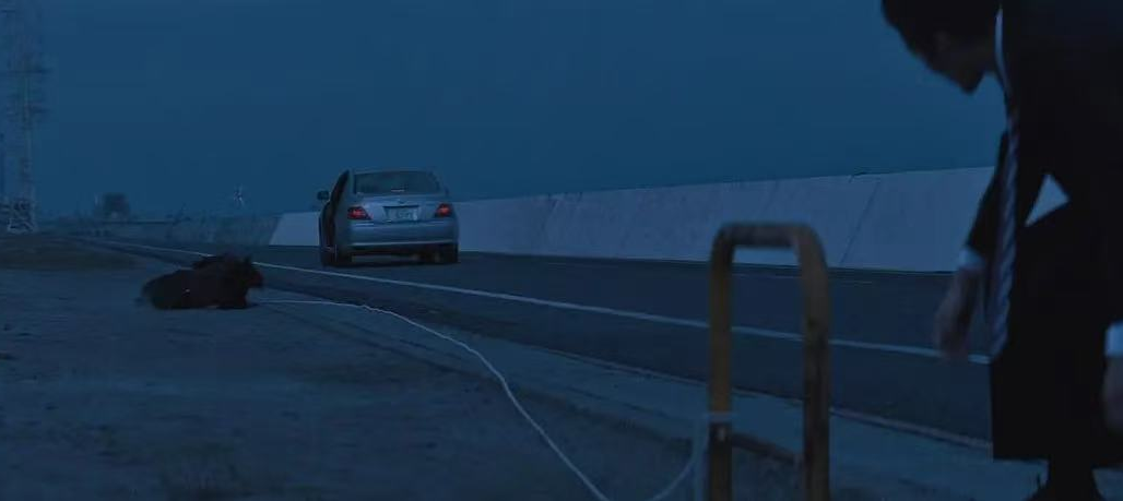 欲表现非正义之暴力,另一种途径是解构,这方面可以参考同样擅长拍摄黑帮题材的日本导演北野武。在其自导自演的黑帮犯罪片《极恶非道》(アウトレイジ,2010)的结尾,日本黑帮的权力恶斗来到 *** ,大友(北野武饰)的“若头”(二把手)水野(椎名桔平饰)被两个人押上车,头被蒙上黑色袋子,一根绳子系在脖子上,另一端则系在路边的石墩上。随着汽车缓缓发动,观众知道,水野的身体必然在某个瞬间会被猛地拖出车外,但整个画面是如此静谧,没有背景音乐,没有任何电影手法上的暗示,只有匀速行驶的汽车和不知道死亡何时来临的无力感。最终,水野的身体在观众猝不及防的某个时刻从车里飞了出来,重重摔在路面上。汽车继续匀速向前驶去,只留下他无力的尸体。