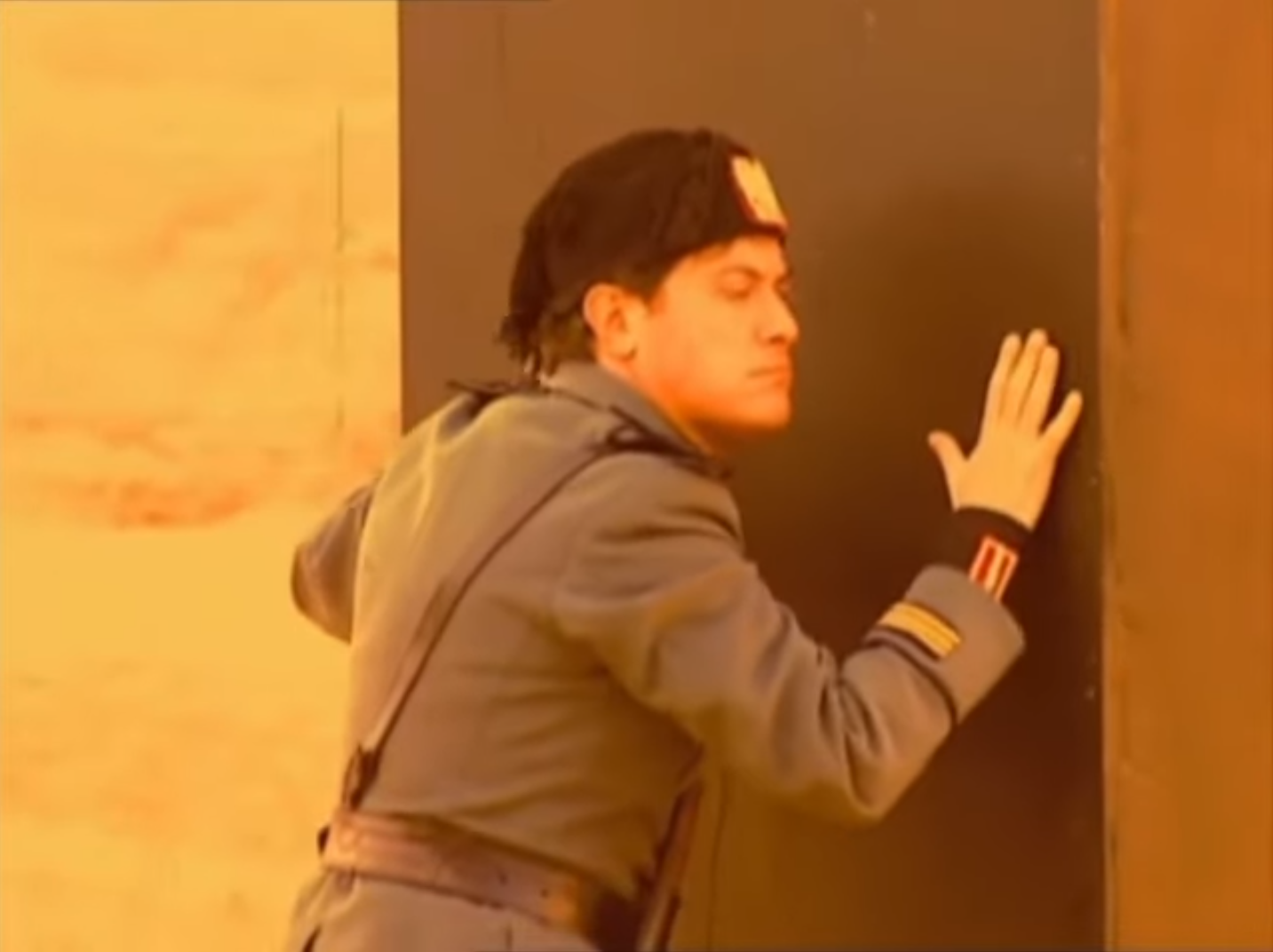 然而,取笑法西斯绝不能仅仅立足于其对外战争的军事失败之上,现实中的法西斯政权,其理念根基本身就是可笑且荒诞的。2006年由科拉多・古赞蒂(Corrado Guzzanti)与伊戈尔・斯科菲奇(Igor Skofic)执导的意大利喜剧《法西斯上火星》(Fascisti su Marte)索性构建了一个排除“国际关系”的意大利法西斯故事——将法西斯的舞台置于外太空。这部影片是一部伪纪录片:设定上是一部“长期以来被认为是伪造的”却“纯粹、绝对、绝妙且无可辩驳的历史事实”(un puro, mero,meravigliuoso eppure incontestabile fatto storico)。一支由长官(Gerarca)加埃塔诺・马里亚・巴尔巴利(Gaetano Maria Barbagli,科拉多・古赞蒂本人饰演)率领的“黑衫军”小队,出发去征服“红色星球”(火星),“他们远离尘嚣,努力为意大利缔造一个崭新的王国”。