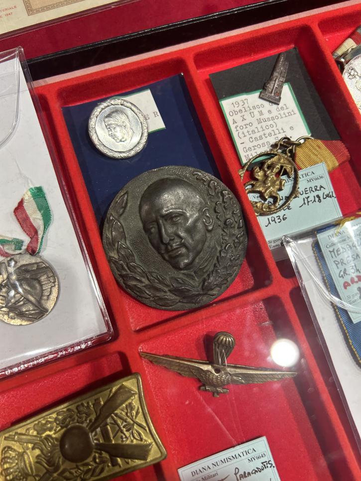 与墨索里尼有关古物并置的邓南遮纪念币,2024年笔者摄于罗马某古玩店