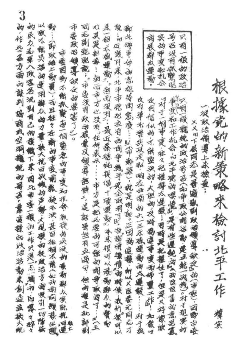 《根据党的新策略来检讨北平工作》,《火线》第68期