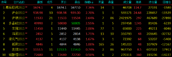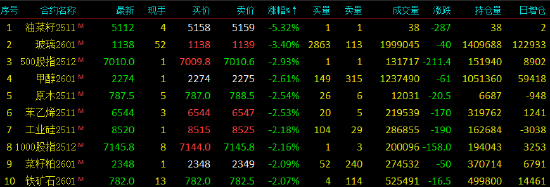 2025年10月14日,国内期货主力合约涨跌互现。跌超3%,、原木、、、、石跌超2%。涨幅方面,(欧线)涨超7%,沪银、沪金、多晶硅、涨超2%。