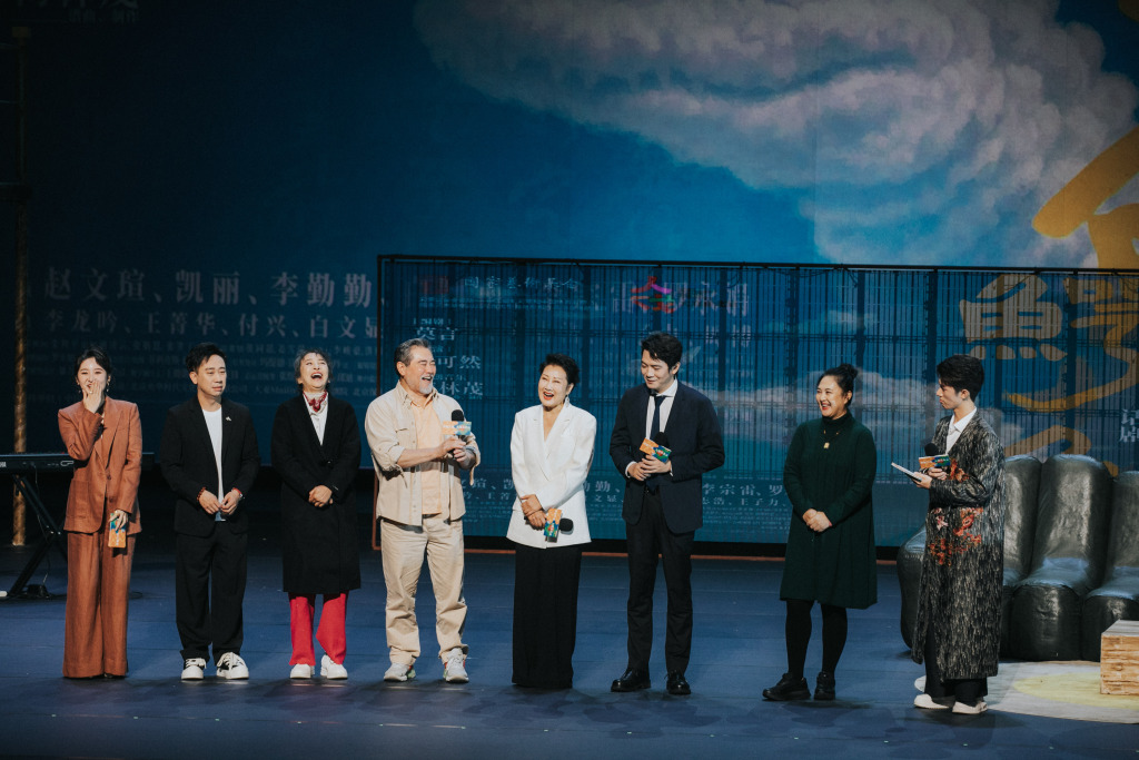 莫言作品改编的《鳄鱼》剧组成为老戏骨展现功力的舞台。主演赵文瑄两手一摊,分指身旁的搭档演员凯丽和李勤勤,“(她俩)一位是我的夫人,一位是我的情人”,幽默介绍点燃现场;白凯南“明年的演出排了300多场”的豪言,则引来凯丽“平常心、平常心”的暖心寄语。该剧当晚在北京上演后,将赴重庆参与文华奖终评演出及香港站演出,其巡演历程本身已成为一场戏剧与文学的对话。