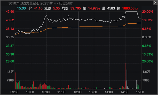 市场热点方面,培育钻石概念今日高开高走,板块指数一度放量涨近6%,创历史新高。临近收盘封死涨停,股价创年内新高;尾盘一度触及20%涨停,、、等在尾盘均出现异动拉升的走势。