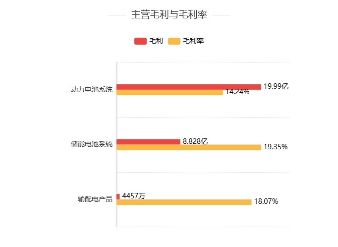 分业务看,报告期内,国轩高科储能电池系统实现营收45.62亿元,占营业收入比重23.52%,同比增长5.14%,毛利率19.35%,下降3.21个百分点。