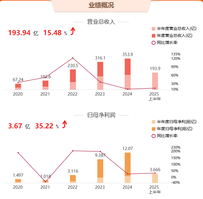 2025年上半年,国轩高科延续增长态势,营收与利润双升,上半年,国轩高科营业收入193.94亿元,同比上升15.48%;实现归属于母公司所有者的净利润3.67亿元,同比上升35.22%;实现归属于上市公司股东的扣除非经常性损益的净利润7,287.07万元,同比上升48.53%,创下历史新高。