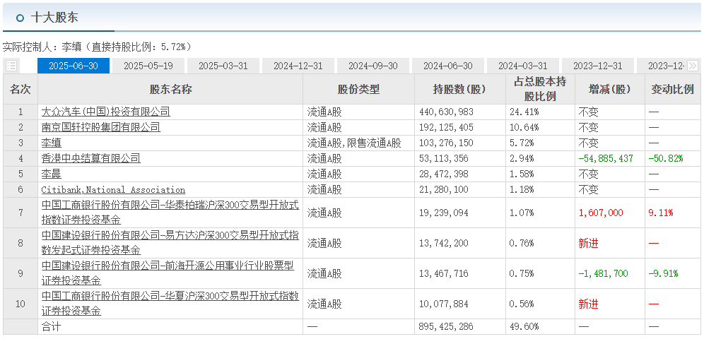 根据2025年半年报,国轩高科股权结构呈现“创始人控股+机构投资者分散持股”特点,公司实际控制人为李缜(直接持股比例:5.72%),公司十大股东主要如下所示: