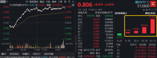 【十月风格切换?银行股全线走强,百亿银行ETF(512800)逆市大涨2.4%,创33亿历史天量!】