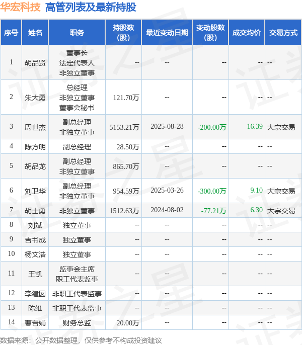 华宏科技近半年内的董监高及核心技术人员增减持详情如下: