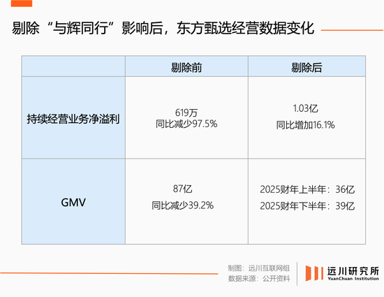 二是对公司经营的持续影响。上一财年,东方甄选的GMV、收入与净利润分别同比下滑了40%、32.7%、97.5%。失去销冠的代价太惨烈,公司会计不得不多做了一道“剔除剥离子公司影响”的算术题。