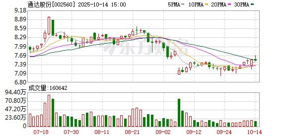 证券时报·数据宝统计显示,通达股份今日收于7.51元,下跌0.53%,日换手率为3.55%,成交额为1.22亿元,近5日上涨3.73%。通过对前三季业绩预增50%以上的个股走势进行统计发现,预告发布后当日股价上涨的占比77.14%,股价发布当日股价涨停的有8家。预告发布后5日股价上涨的占比80.00%。