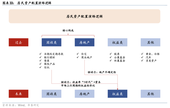 过去我国居民资产配置以房地产、固收类资产为主,当前地产价格仍有一定不确定性、固定收益类资产的收益率普遍下行。而中长期看权益市场迎来政策、市场、资金等多维度的共振期,表现强劲;且在中长期资金入市、监管呵护平稳运行的“慢牛”预期下,波动率持续下降,投资者的持有体验提升。我们看好未来居民资产再配置向权益的趋势与力量。
