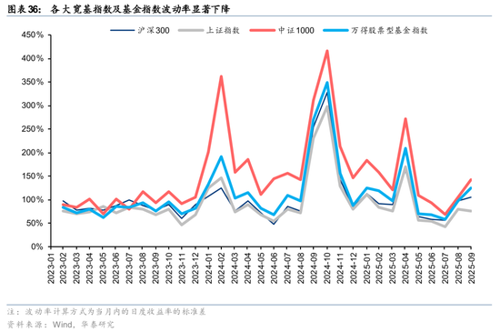 权益资产收益提升+波动下降,吸引力增强。今年以来权益市场表现强劲,截至9月末和上证指数的收益率分别达到17.9%和15.8%,而和万得股票型基金指数更是高达27.1%和30.9%,百亿规模以上私募基金上半年平均实现10.9%的收益。与此同时,各大宽基指数、万得股票型基金指数的收益率波动率显著下降,投资者的持有体验提升。在低利率环境下,权益资产凭借其更高的潜在回报和相对稳定的表现,对投资者构成了更具吸引力的选择。