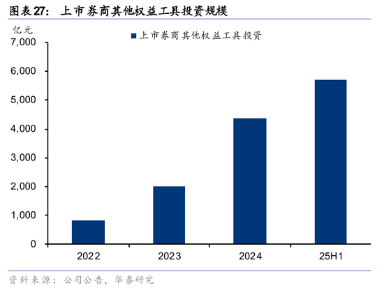 权益市场中长期维度稳步向上,券商加大权益投资,有望继续展现业绩弹性。近年来券商持续加大股票OCI投资,聚焦高股息资产,获取稳定股息收益。25H1末上市券商其他权益工具投资(不全为股票,包含永续债和REITs)规模合计5716亿元,较2022年末增长超6倍。同时, *** 于8月22日新修订《证券公司分类评价规定》,新增加分指标重点倾斜权益投资,预计部分TPL仓位灵活的券商继续加大权益类资产布局。Q3以来权益市场继续稳步向上,投资业务有望贡献更高的收入弹性。此外,头部券商仍有一定股权投资或跟投敞口,权益市场上涨或带来估值修复。