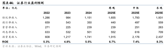 随着资本市场扩容和活跃度提升,券商各业务线正迈上新的发展台阶。目前A股市值已突破100万亿元,位居全球前列,为券商业务的增长提供广阔空间。市场交易活跃度显著提升,前三季度全A日均成交额同比+107%,两融余额屡创新高。投行正进入修复期,前三季度A股/港股股权融资规模同比+84%/+251%。投资业务有望保持稳中有进的态势。预计在当前市场趋势下,市场交投和各类业务将保持良好水平,从而支撑券商业绩的持续性。我们预计中性情景下,行业2025年ROE有望达到7.4%,净利润同比+43%。