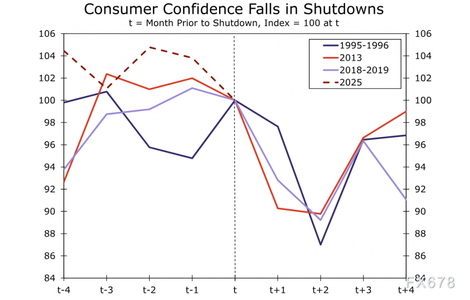 根据历史经验,市场推测消费者信心指数将在10月乃至11月因 *** 停摆而持续下滑。