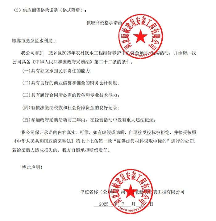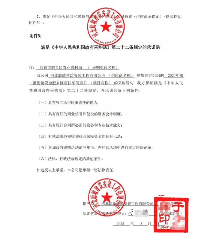 值得注意的是,聪敏公司在参与邯郸市肥乡区两个招投标项目时,还提供了“具有良好的商业信誉和健全的财务会计制度”的承诺函。