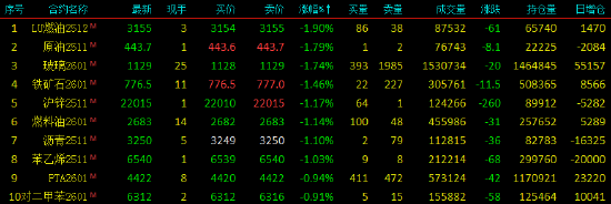 2025年10月15日,国内期货主力合约涨跌互现,SC、低硫(LU)、、燃料油、石、、跌超1%。涨幅方面,(欧线)涨超4%,多晶硅涨超3%,沪银、、沪金涨超2%。
