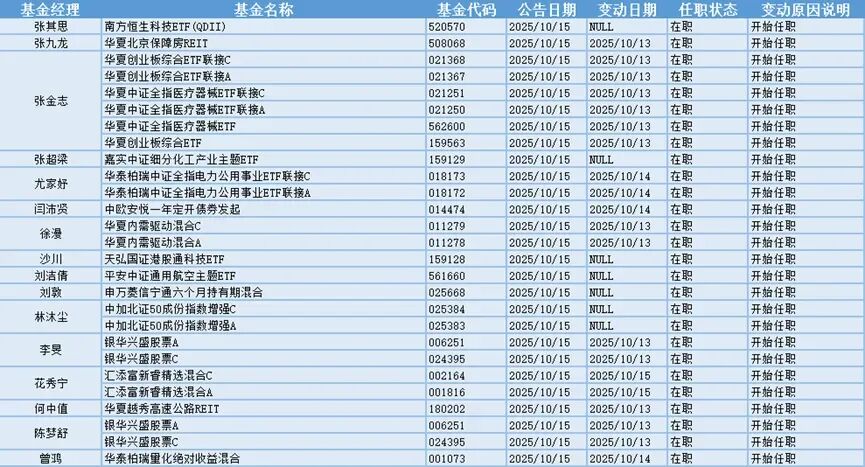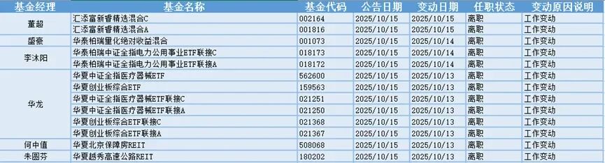 今天(10.15)有13只基金产品发布基金经理离职公告,从变动原因上来看,有6位基金经理是由于工作变动而从管理的13只基金产品中离职。(金融界)